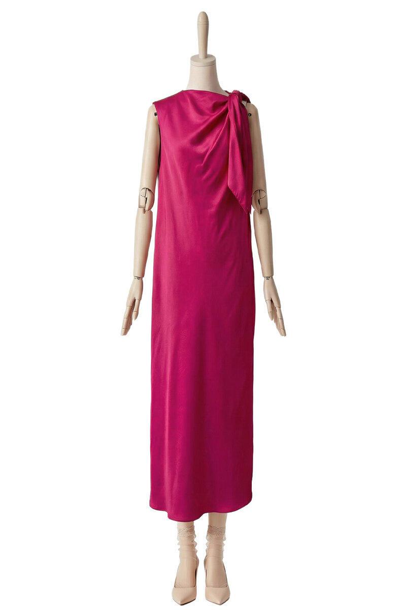 ABITO INN SATIN CON FIOCCO SULLA SPALLA - 38 / FUCSIA