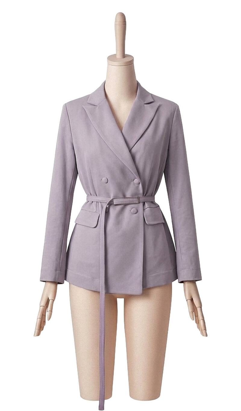 GIACCA DOPPIO PETTO IN COTONNE STRETCH E CINNTURINA IN VITA - LILLA' / 44