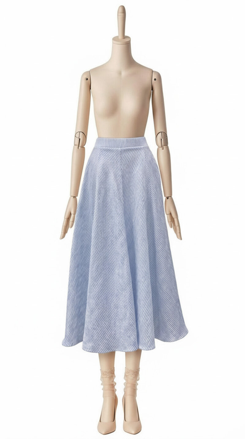 GONNA A RUOTA A RIGHE IN SBIECO IN SEERSUKER - 38 / BIANCO-CELESTE (riga sirsuker)