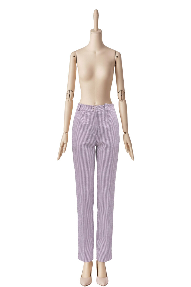 PANTALONE GAMBA STRETTA RIGHINA IN SEERSUCKER - 38 / BIANCO-LILLA' (riga sirsuker)