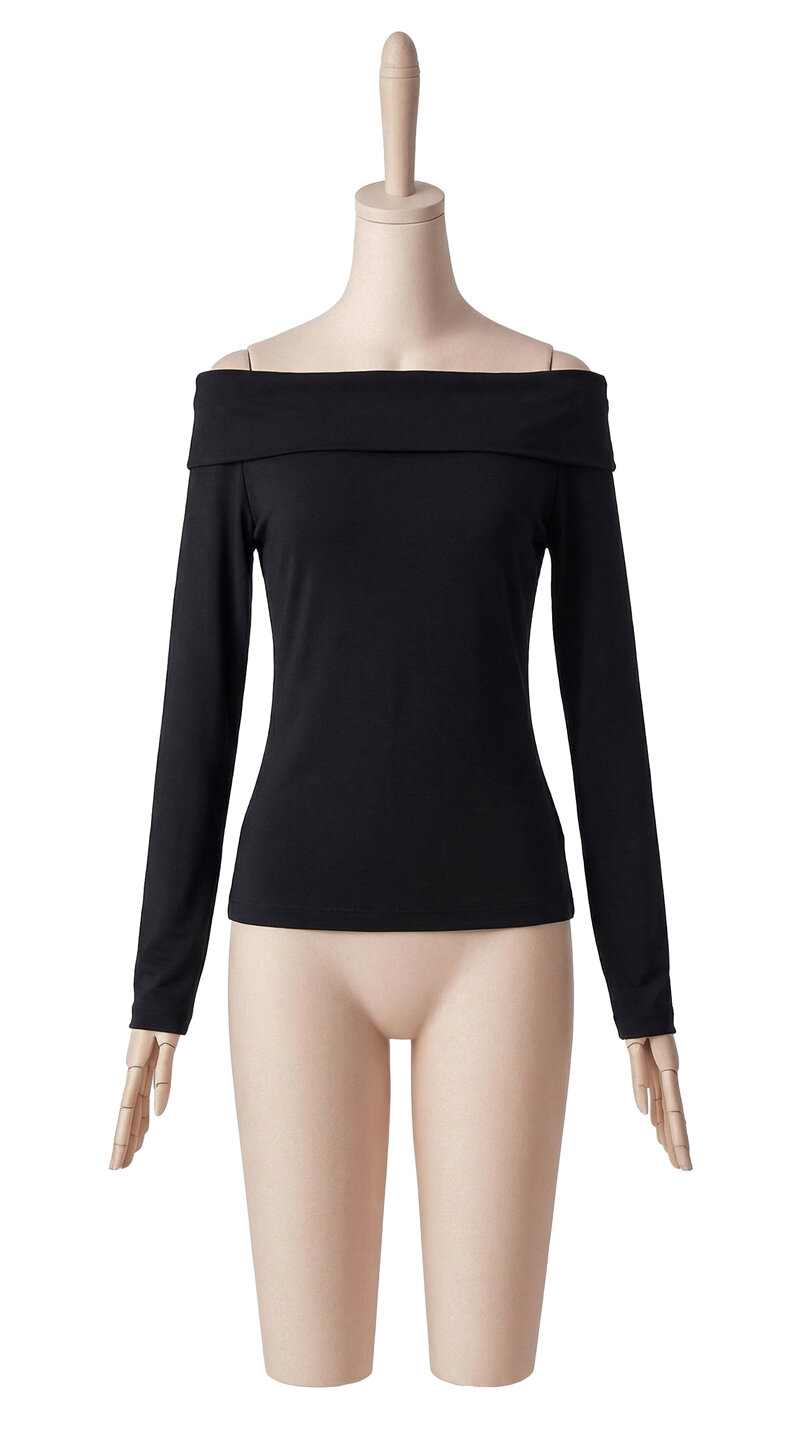 T.SHIRT CON SCOLLO A BARCA - NERO / 44
